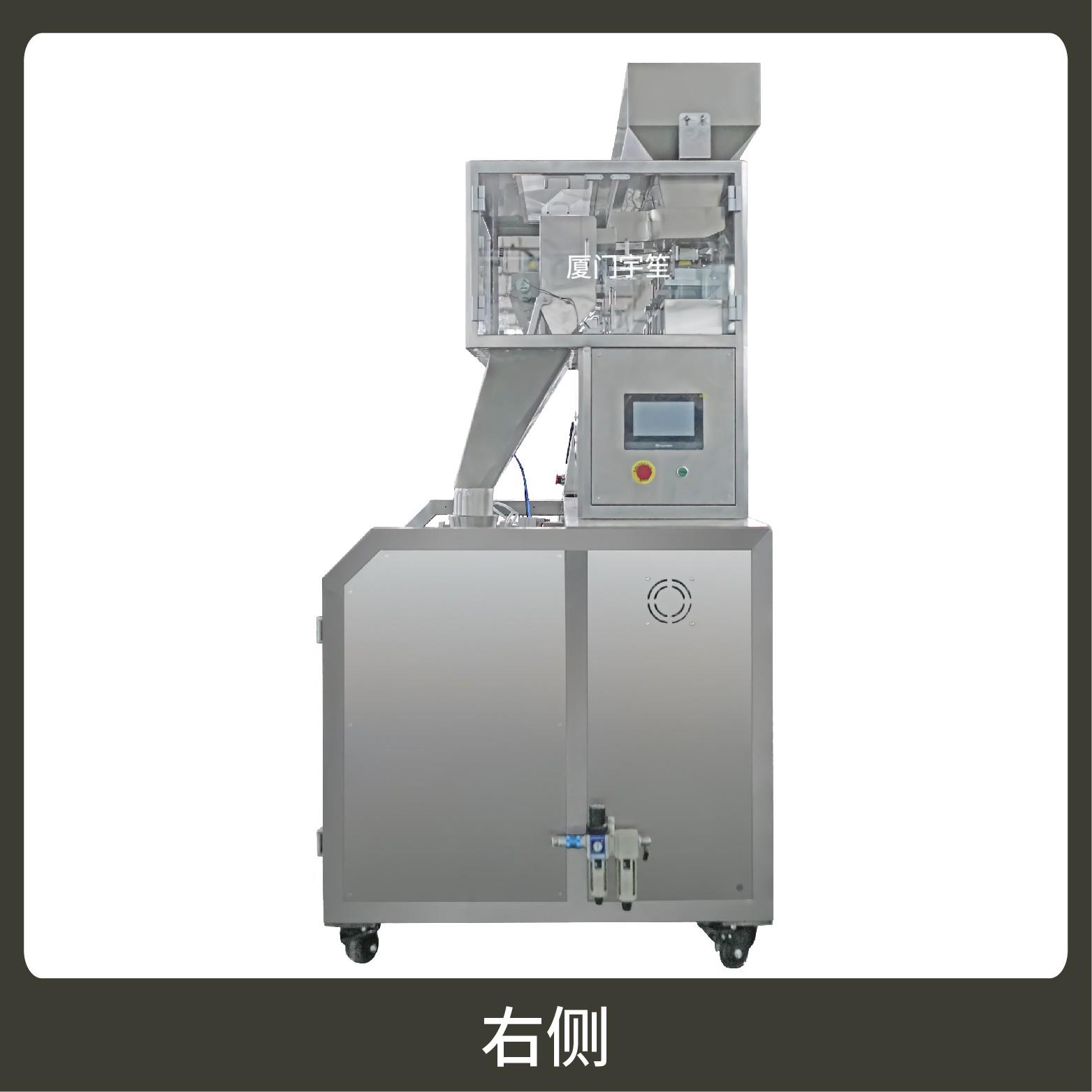 2、用于自封袋、站立袋、拉鏈袋,可抽真空、充氮氣。包裝流程全自動,無需人工操作??筛鶕?jù)充填物料的性質選配不同的下料結構,且可根據(jù)客戶要求配置打印批號等功能。